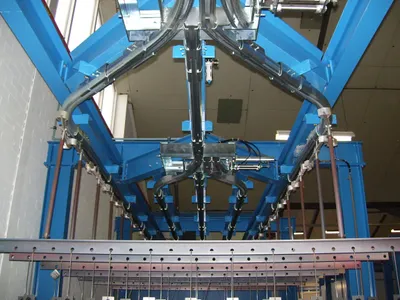 Das Monorailsystem ist ein nicht-angetriebenes System. Die Produkte werden mittels Räder manuell durch das Transportsystem bewegt. In einem Monorailsystem können unterschiedliche Komponenten eingebaut werden, damit eine flexibeles Routing des Produktes erreicht werden kann. Es können zum Beispiel Weichen in Y-Form oder in T-Form installiert werden, so wie Drehscheiben, und Hebe- und Absenkstationen für schwere Produkte. Auch sogenannte „fahrende Puffer“ bieten viel Flexibilität bei der manuelle Förderung durch die Möglichkeit, mehrere Produkte in Querlage gleichzeitig transportieren zu können. Auf diese Weise können die Produkte schnell an eine (feste) Schiene in Richtung Pulverkabine, Kammerofen oder Wartepuffer gekoppelt werden.