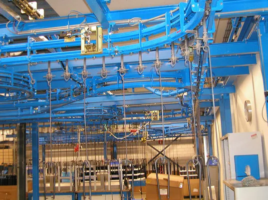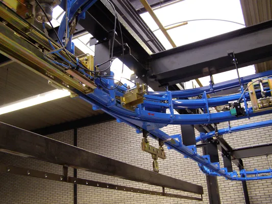 Das Power & Free Transportsystem besteht aus zwei Teilen. Bei dem sogenannten „Free“ Teil wird eine Transporteinheit bewegt - die darüber liegende Kette, der „Power“ Teil der Anlage, führt die diese Transporteinheit samt Produkte durch die Anlage. Durch gewichtsoptimierte Ketten, kann dieses Power&Free System erheblich schwerere Lasten tragen. Stopper, Weichen und Wartepuffer können in dem System eingebaut werden, wodurch ein äußerst flexibles Fördersystem entsteht. Alle Wartezeiten eines Produktes (zum Beispiel in dem Trockner, Ofen oder Puffer) können in dem interaktiven Bedienfeld des Schalterschrankes eingegeben werden. Emotech arbeitet zusammen mit der Firma Kewesta, Lieferant von Kreisförderanlagen und Power&Free Systemen. Kewesta Fördersysteme sind international bekannt aufgrund ihrer Robustheit und Zuverlässigkeit.