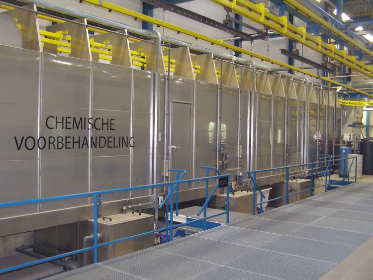 Wir verfügen über langjährige Erfahrung bei der Konstruktion und Installation von Durchlauf-Vorbehandlungsanlagen. Je nach Reinigungsprozess, bestimmen Durchlauf-Vorbehandlungsanlagen zu einem großen Teil das Layout der restlichen Beschichtungsanlage. Dies beruht auf der Länge, die für die aufeinanderfolgenden Reinigungsprozesse benötigt wird. Eine Durchlauf-Vorbehandlungsanlage hat den großen Vorteil, dass sie sich hervorragend für einen kontinuierlichen Produktionsprozess eignet. Die Produkte durchlaufen mit einer kontinuierlichen Geschwindigkeit den Vorbehandlungstunnel, wodurch eine hohe Leistung der Anlage erreicht wird. Durch die Verwendung hochwertiger Stahlarten, hält die Anlage bis zu Jahrzehnte, in Abhängigkeit von den verwendeten Reinigungsflüssigkeiten. Die verwendeten Flüssigkeitspumpen werden außerdem so ausgewählt, dass diese jahrenlang praktisch wartungsfrei sind.