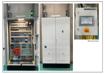 De besturingskast is uitgevoerd volgens de laatste stand der techniek op basis van Siemens PLC techniek. Bediening van de besturingskast geschiedt middels een gebruikersvriendelijke Siemens HMI applicatie. De programmering hiervan, samen met de PLC wordt bij Emotech intern voorbereid en getest middels het Siemens TIA portal programmeersoftwarepakket.