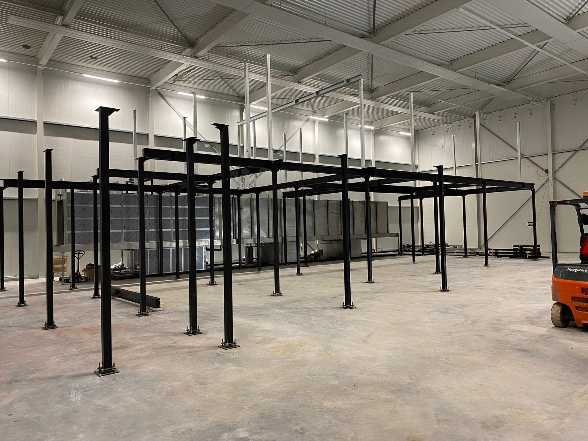 Om een goed beeld te geven van de volledige bouw van een poedercoatinstallatie, hebben we bij de start van de bouw een camera in de hal geplaatst, zodat via een time-lapse het hele proces van de bouw te volgen is.