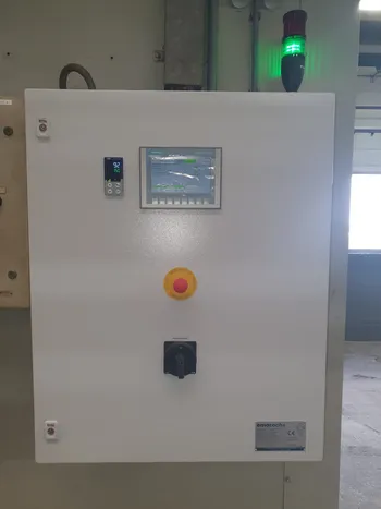 VDL Postma in Heerenveen is toeleverancier als het gaat om plaatbewerking, buisbewerking, (robot)lassen en poedercoating. Voor hun coatinginstallatie hebben wij een nieuwe PLC gestuurde besturingskast gebouwd en geïnstalleerd. Tevens is de moffeloven voorzien van een moderne modulerende Weishaupt WG30 gasbrander. In de gasleiding is een zogenaamde Quantometer geplaatst, waarmee het gasverbruik van de moffeloven nauwkeurig van dag tot dag kan worden gevolgd via het touchpanel.
